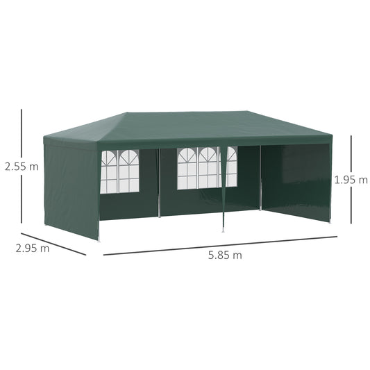 Outsunny 6x3 m Party Tent Gazebo Marquee Outdoor Patio Canopy Shelter with Windows and Side Panels, Green