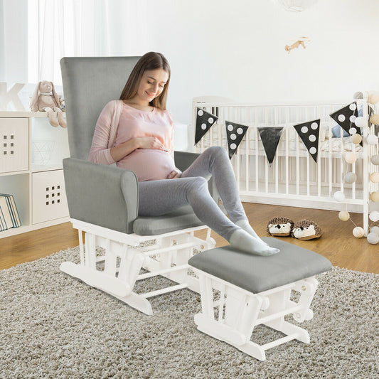 Upholstered Fabric Rocker with Solid Rubber Wood Frame and Padded Cushion-Grey