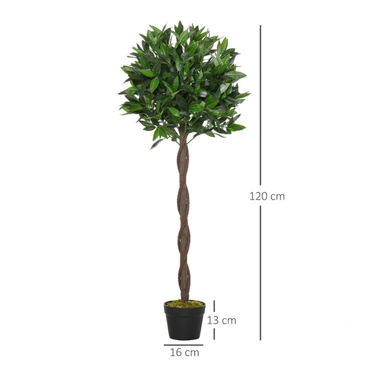 Outsunny Set of 2 Artificial Topiary Bay Laurel Ball Trees Decorative Plant with Nursery Pot for Indoor Outdoor Decor, 120cm