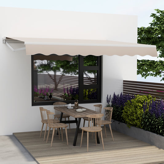 4 x 2.5 m Patio Retractable Awning with Manual Crank Handle-Beige