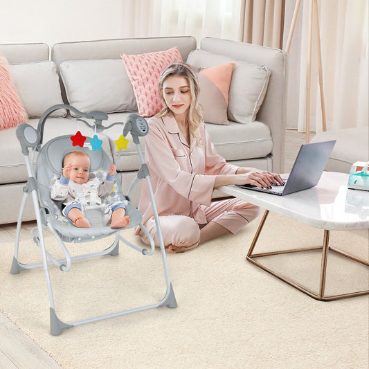 Portable 2-in-1 Baby Swing with 3 Swing Speed and 3 Timer Settings-Grey