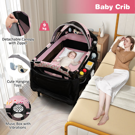 4 in 1 Portable Baby Nursery Center with Bassinet-Pink