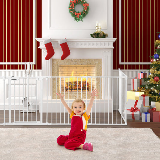 8 Panels Baby Playpen Metal Foldable Design with Safety Lock-White