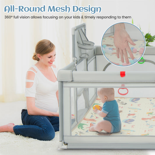 Large Baby Playpen with Mat and Ocean balls-Light Grey
