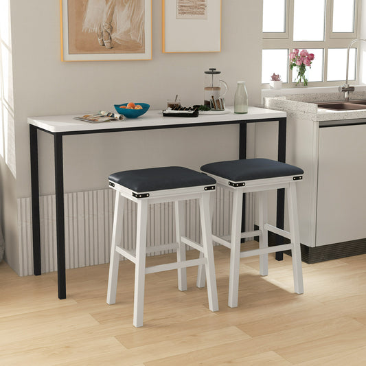 Upholstered Backless Bar Stools Set of 2 with PU Leather Padded Seat-White