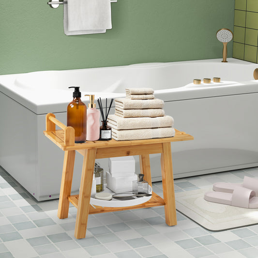 Bamboo Shower Bench with Storage Shelf and Non-Slip Feet