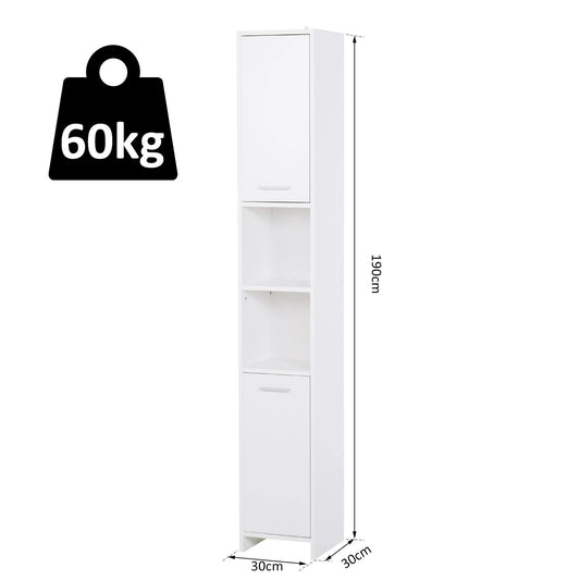 HOMCOM Slim Bathroom Tall Cabinet, High Floor Cabinet Unit for Bathroom, Freestanding Storage Cabinet with 2 Doors and Adjustable Shelves, White