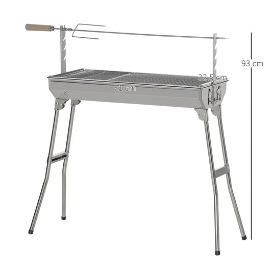 Outsunny Charcoal Grill Portable BBQ Rotisserie Roaster with Foldable Legs, Chicken Spit Roast Machine for Outdoor Picnic Camping