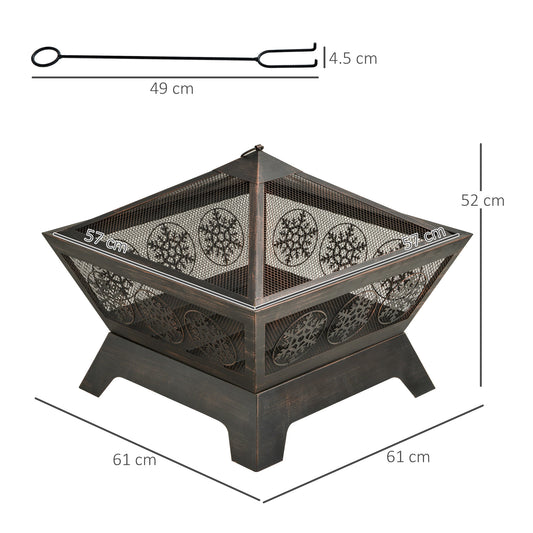 Outsunny Outdoor Fire Pit, Metal Square Firepit Bowl with Spark Screen, Poker for Patio, BBQ, Camping, 61 x 61 x 52cm, Black