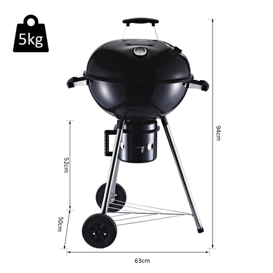 Outsunny Charcoal BBQ Portable Kettle BBQ Charcoal Grill Outdoor Barbecue Picnic Party Camping with Wheels