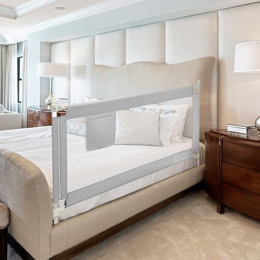 175CM Baby Bed Rail Guard with Double Safety Lock and Adjustable Height-Grey