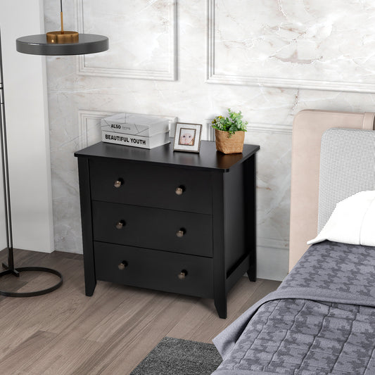 3-Drawer Wooden Dresser Chest of Drawers with Round Metal Knobs-Black