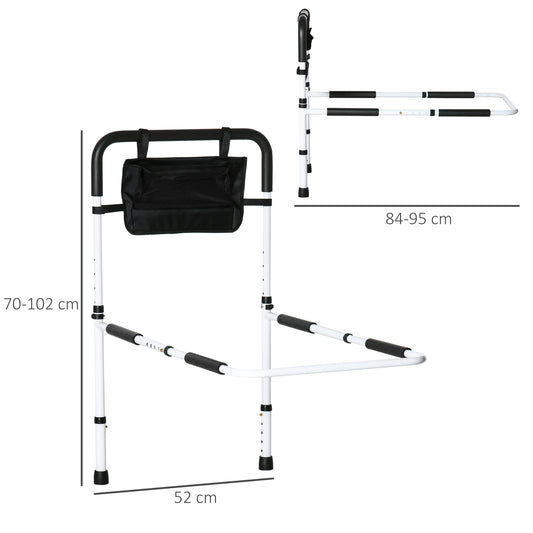 HOMCOM Safety Bed Rail, Height Adjustable Bed Assist Rail with Storage Pocket, Grab Bar for Disabled and Senior, White