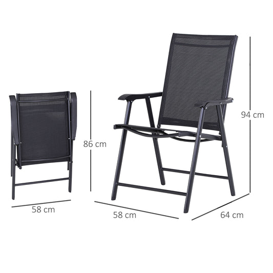 Outsunny 6 PCs Garden Patio Furniture Set Bistro Set Texteline Folding Chairs +Table +Parasol (Black)