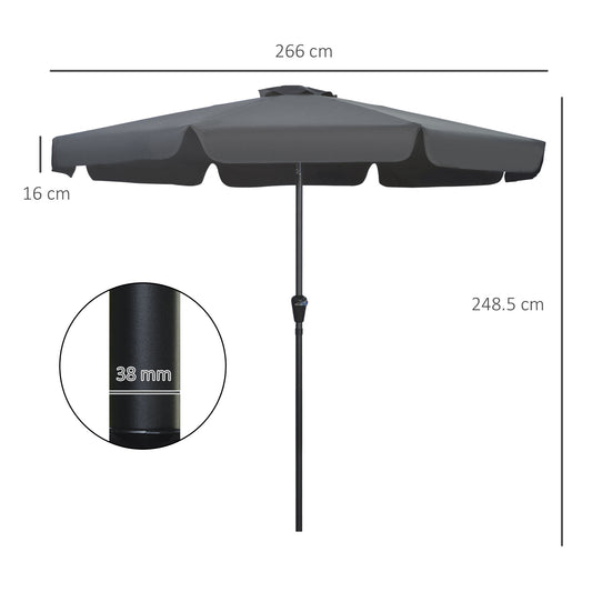 Outsunny 2.7m Patio Parasol Garden Umbrellas Outdoor Sun Shade Table Umbrella with Tilt, Crank, 8 Ribs, Ruffles, Black