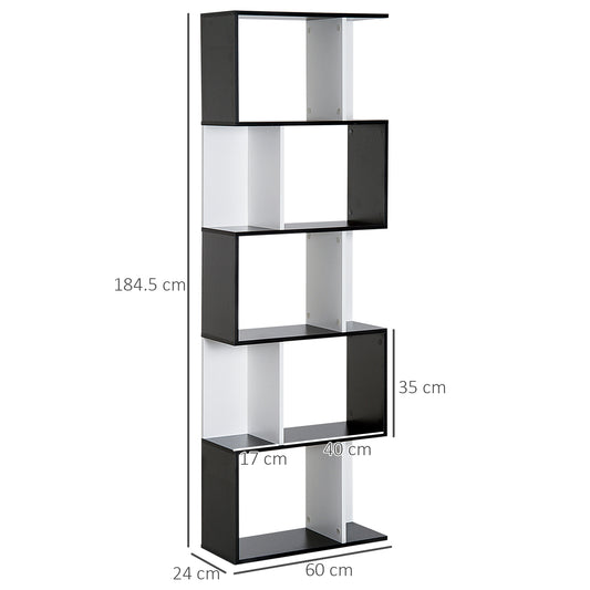 HOMCOM 5-tier Bookcase Storage Display Shelving S Shape design Unit Divider Black