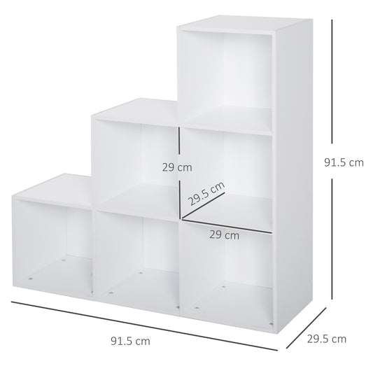 HOMCOM 3-tier Step 6 Cubes Storage Unit Particle Board Cabinet Bookcase Organiser Home Office Shelves - White