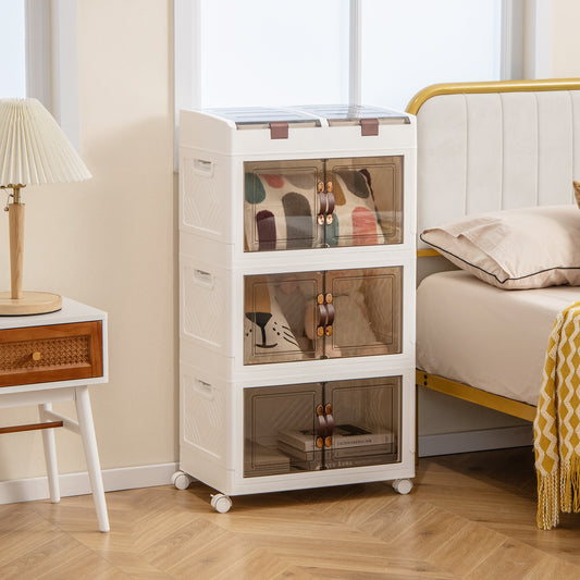 160 L Collapsible Storage Bins with Wheels and Magnetic Doors-White