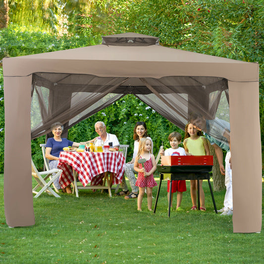 10 x 10ft Double Tiered Canopy Gazebo Garden Shelter Tent-Brown