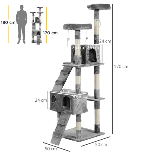 PawHut Cat Tower Centre Sisal Kitten Tree Scratch Scratcher Scratching Post Toy Climbing Tree Bed Multi Level 181cm(H)