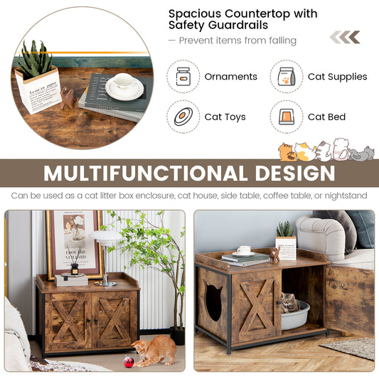 Cat Litter Box Enclosure with Double Louvered Doors, Side Entrance-Rustic Brown