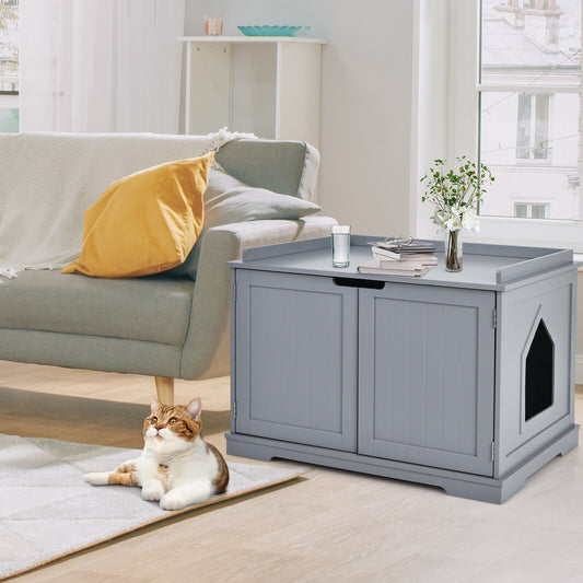 Large Cat Litter Box with Double Doors and Removable Divider-Grey