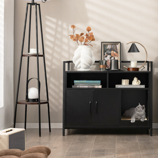 Modern Cat Litter Box Enclosure with Double Door Cabinet