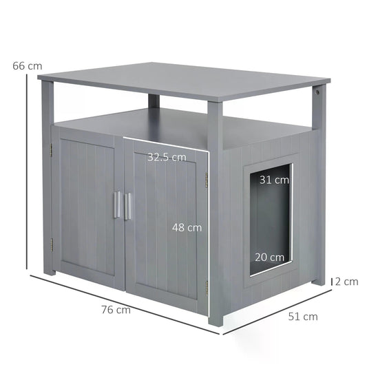 PawHut Wooden Cat Litter Box Enclosure Furniture with Adjustable Interior Wall & Large Tabletop for Nightstand, Grey