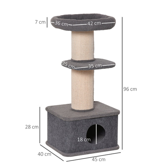 PawHut Cat Tree Kitten Tower Multi-level Activity Centre Pet Furniture with Sisal Scratching Post Condo Plush Perches Grey