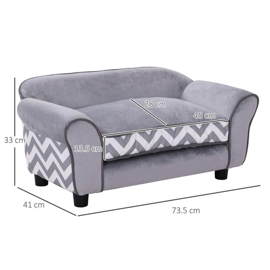 PawHut Dog Sofa Bed for XS-Sized Dogs, Cat Sofa with Soft Cushion, Pet Chair Lounge with Washable Cover, Removable Legs, Wooden Frame - Grey