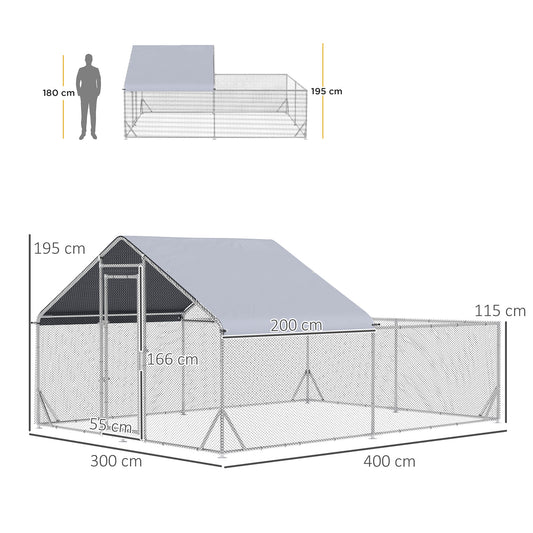 PawHut Galvanised Outdoor Chicken Coop, with Cover, for 8-12 Chickens, Hens, Ducks, Rabbits, 3 x 3.8 x 2.2m - Silver Tone