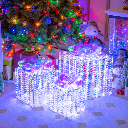 Set of 3 Iridescent Christmas Gift Box Decorations for Indoor Outdoor