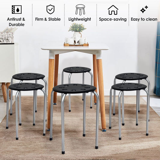 Set of 6 Stackable Portable Breakfast Dining Chairs for Home Kitchen Office-Black