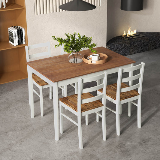 5 Pieces Kitchen Dining Table and Chair Set with Sponge Cushion-Natural