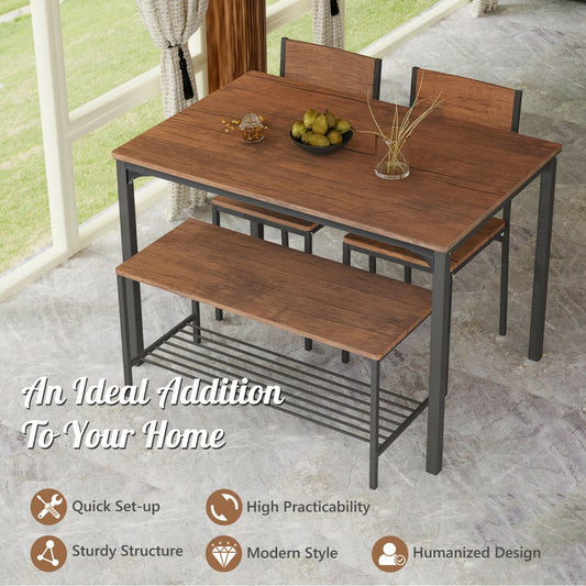 4Pcs Dining Table and Chair Set with Storage Bench-Deep Brown