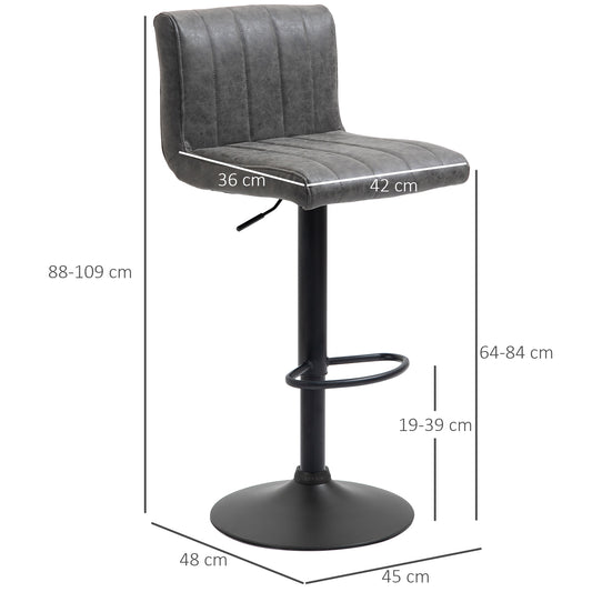 HOMCOM Set of 2 Adjustable Height Bar Chairs with Footrest, Bar Stools Set of 2 for Home Dining Areas, PU Leather, Gas Lift, Grey
