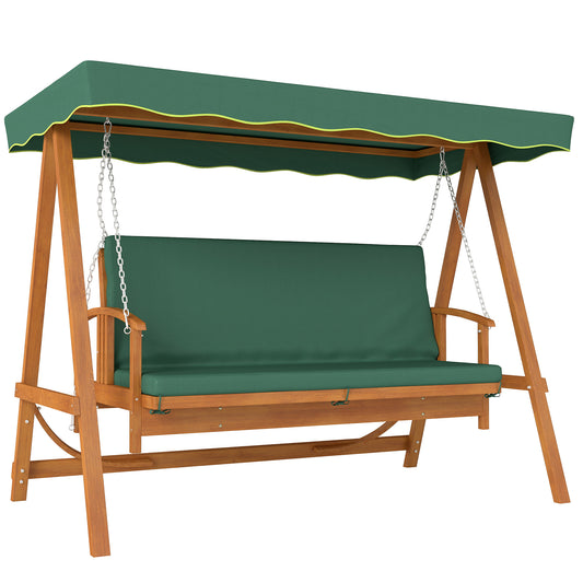 Outsunny 3 Seater 2-in-1 Wooden Garden Swing Seat Swing Chair Outdoor Convertible Hammock Bench Furniture Lounger Bed Wood, Dark Green