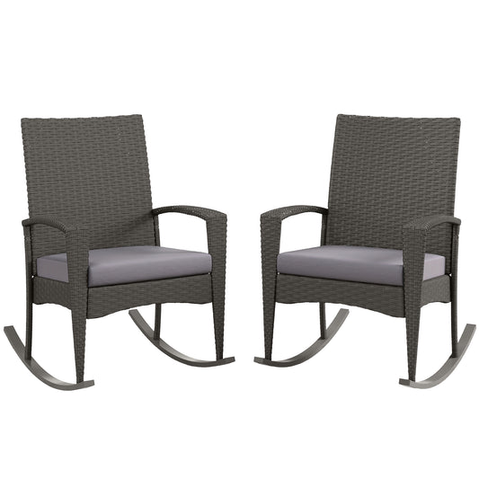 Outsunny Outdoor PE Rattan Rocking Chair Set of 2, Garden Rocking Chair Set with Armrest and Cushion, Grey