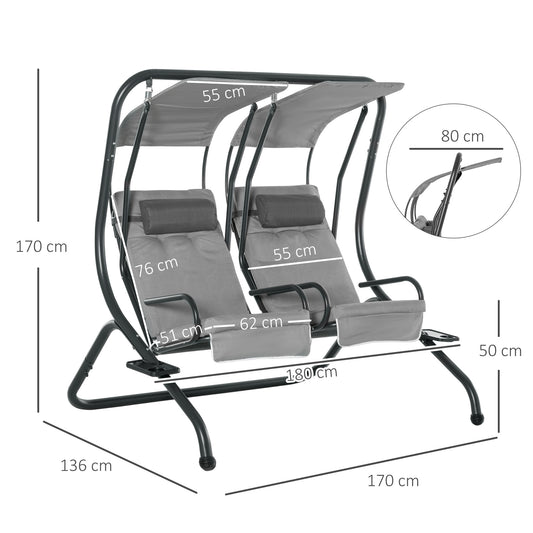 Outsunny Double Seat Swing Chair Modern Garden Swing with 2 Separate Relax Chairs, Handrails, Headrests and Removable Canopy, Grey
