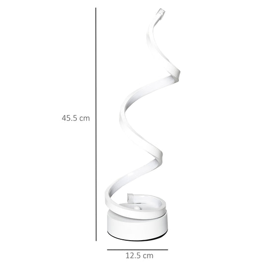 HOMCOM Modern Wave-Shaped LED Table Lamp with Round Metal Base for Living Room, Bedroom, Study, Dining Room, Office, Cool White 6000K, White