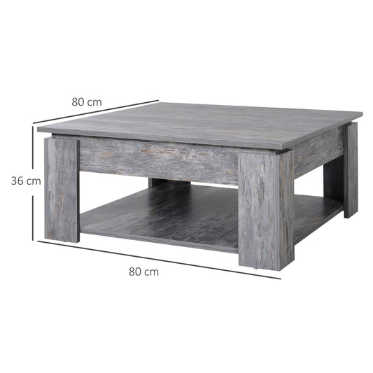 HOMCOM 2 Tier Wood Coffee Table Side Table Bottom Storage Shelf Simple Modern Living Room Grey Wood Grain