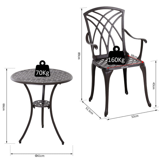 Outsunny Patio Cast Aluminium 3 PCS Bistro Set Coffee Table & 2 Chairs Set Outdoor Garden Furniture Set