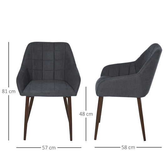 HOMCOM 2 Pcs Linen-Touch Fabric Dining Chair with Cushion, Backrest, Mid Back Leisure Chair with Steel Leg, Sponge Padded Armchair for Dining Room