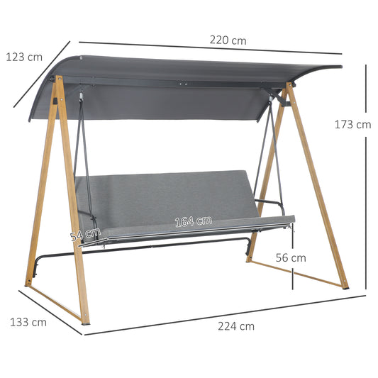 Outsunny 3 Seater Garden Swing Chair Bench with Adjustable Canopy, Cushioned Seat and Weather Resistant Steel Frame for Patio, Yard