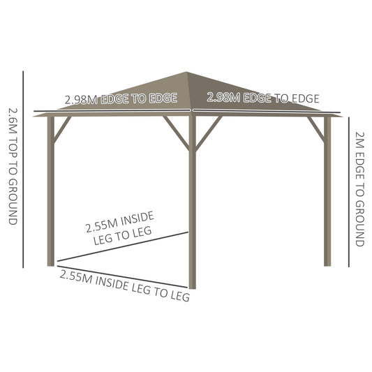 Outsunny 3 x 3 m Garden Gazebo with Netting and Curtains, Hard Top Gazebo Canopy Shelter with Metal Roof, Aluminium Frame, for Garden, Lawn, Deck, Bronze Tone