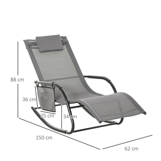 Outsunny Breathable Mesh Rocking Chair Patio Rocker Lounge for Indoor & Outdoor Recliner Seat with Removable Headrest for Garden and Patio Grey