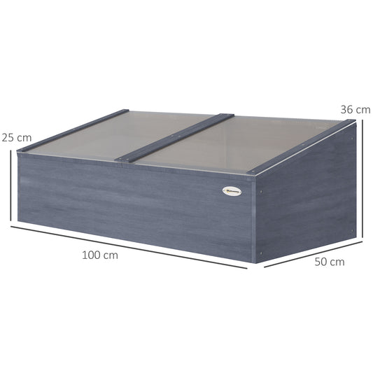 Outsunny Wooden Cold Frame Greenhouse Garden Polycarbonate Grow House with Independent Openable Top Covers for Plants, 100 x 50 x 36 cm, Light Grey