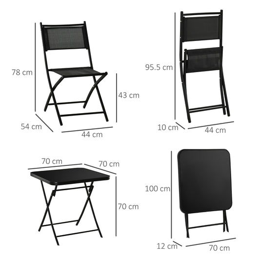 Outsunny 3 Pieces Patio Table and Chairs, Folding Patio Table and 2 Chairs, Outdoor Furniture Set for Backyard and Porch, Black