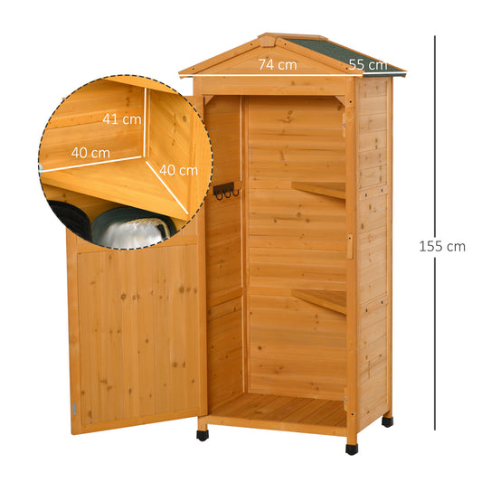 Outsunny Wooden Garden Cabinet 3-Tier Storage Shed 2 Shelves Lockable Organizer with Hooks Foot Pad 74 x 55 x 155cm Dark Yellow
