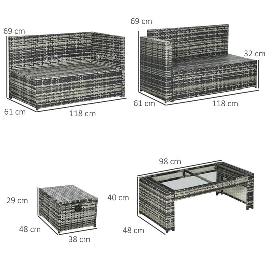 Outsunny 6-Seater Garden Rattan Furniture PE Rattan Sofa Set, Outdoor All Weather Conservatory Furniture, with Tempered Glass Coffee Table, Deep Grey